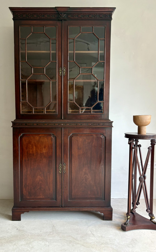 C19 th Chinese charger with a hanging system on the back. Decorated with flowers birds and foliage and a geometric repeat key design around the edge.