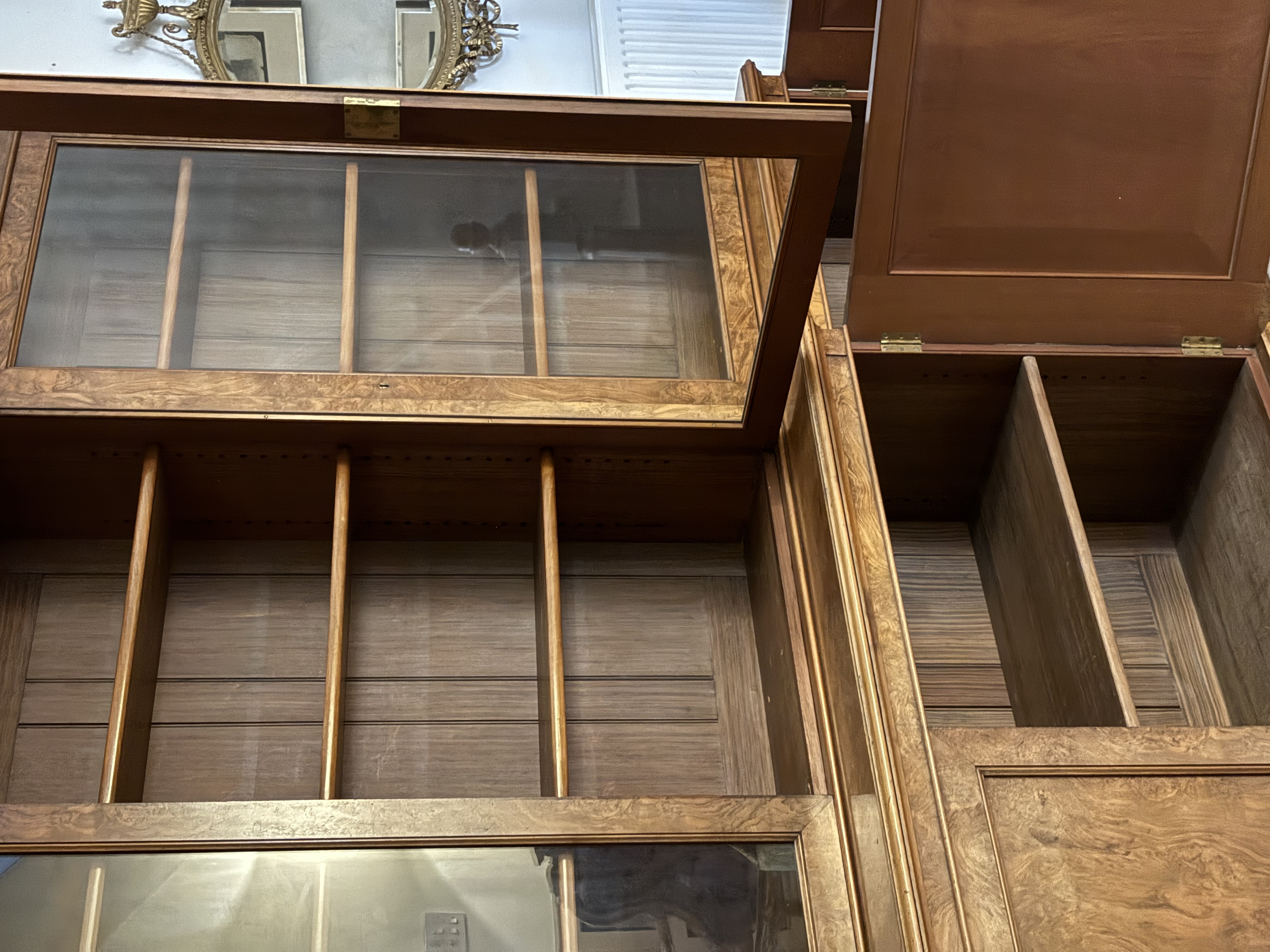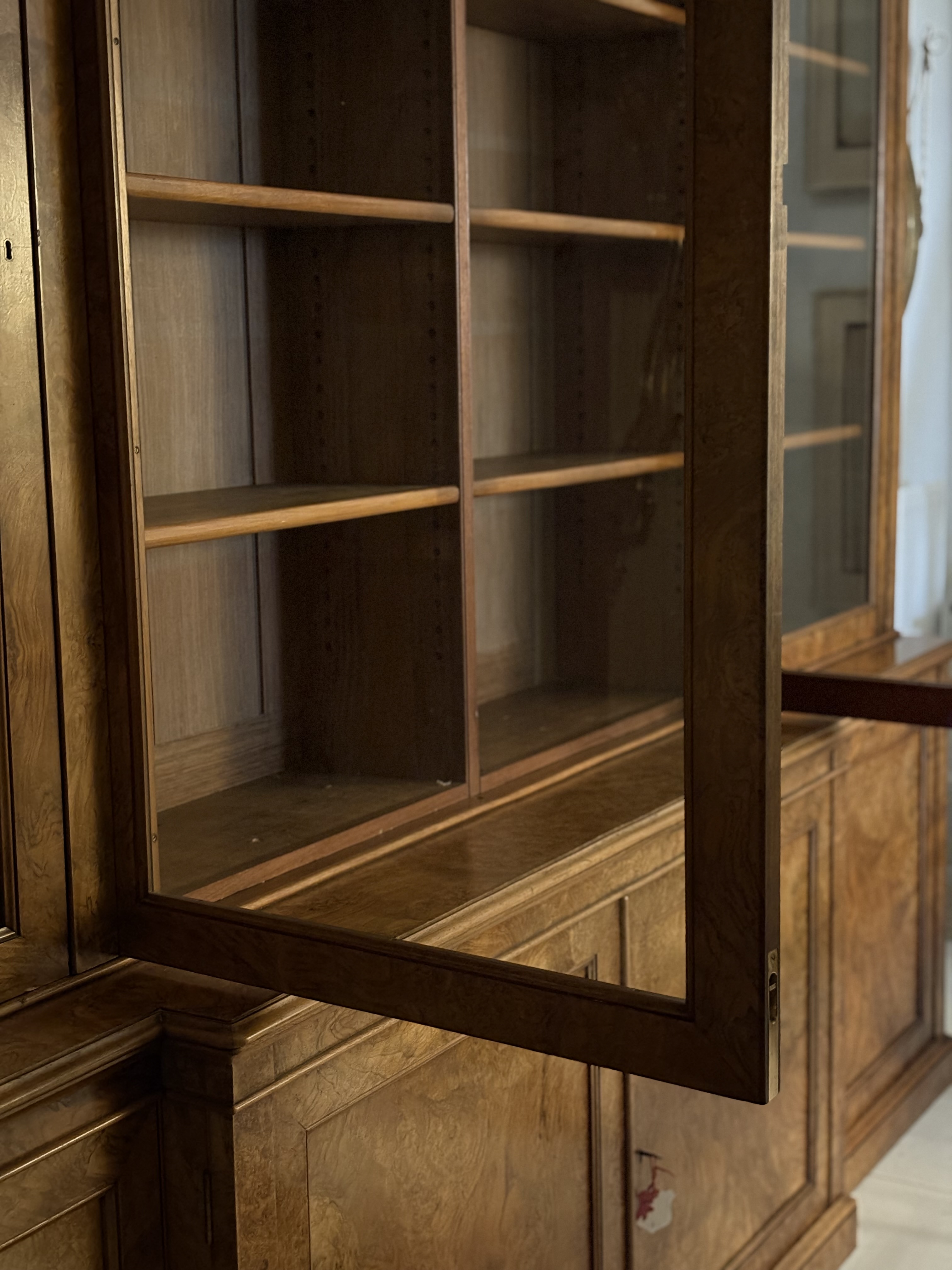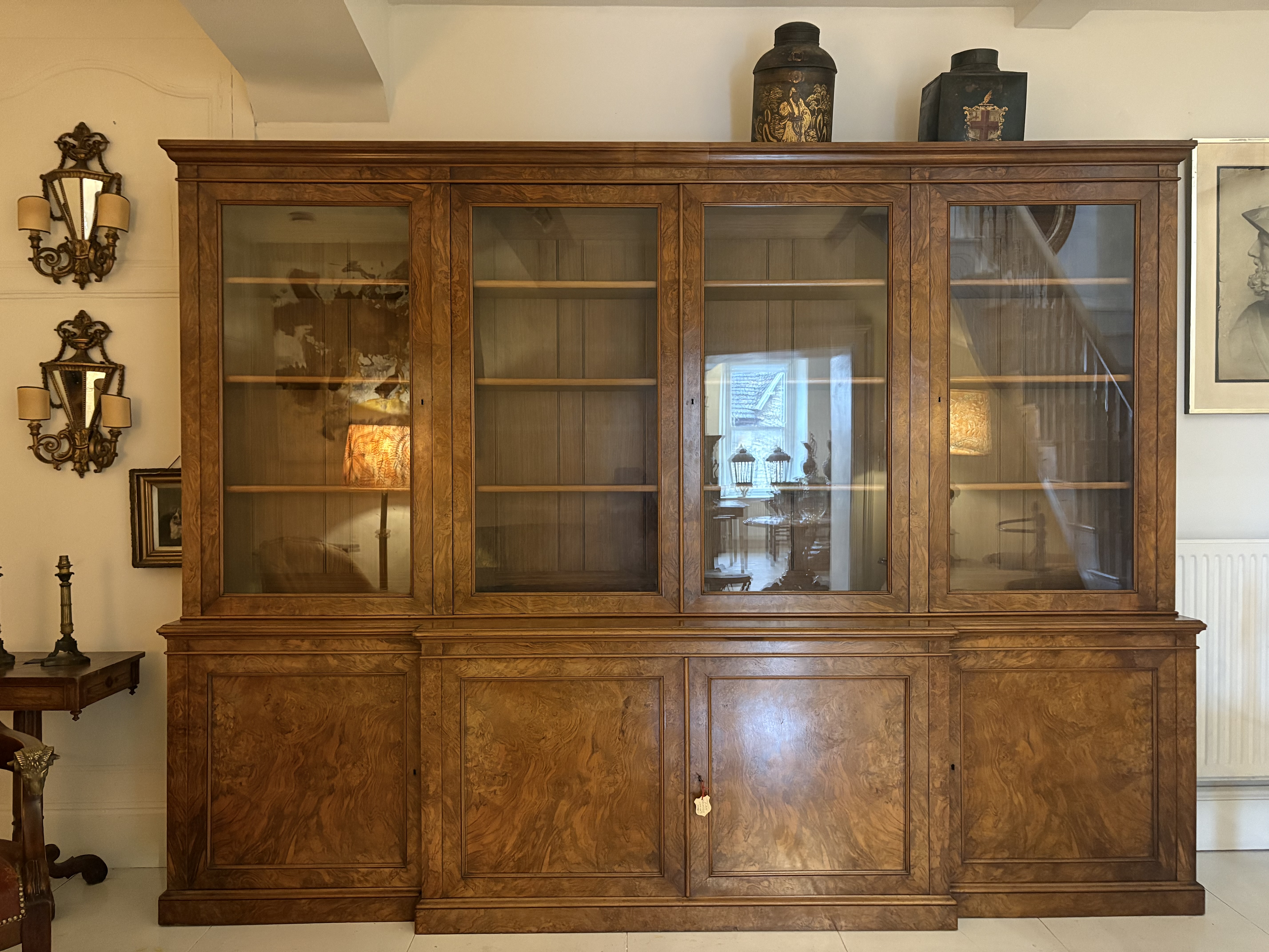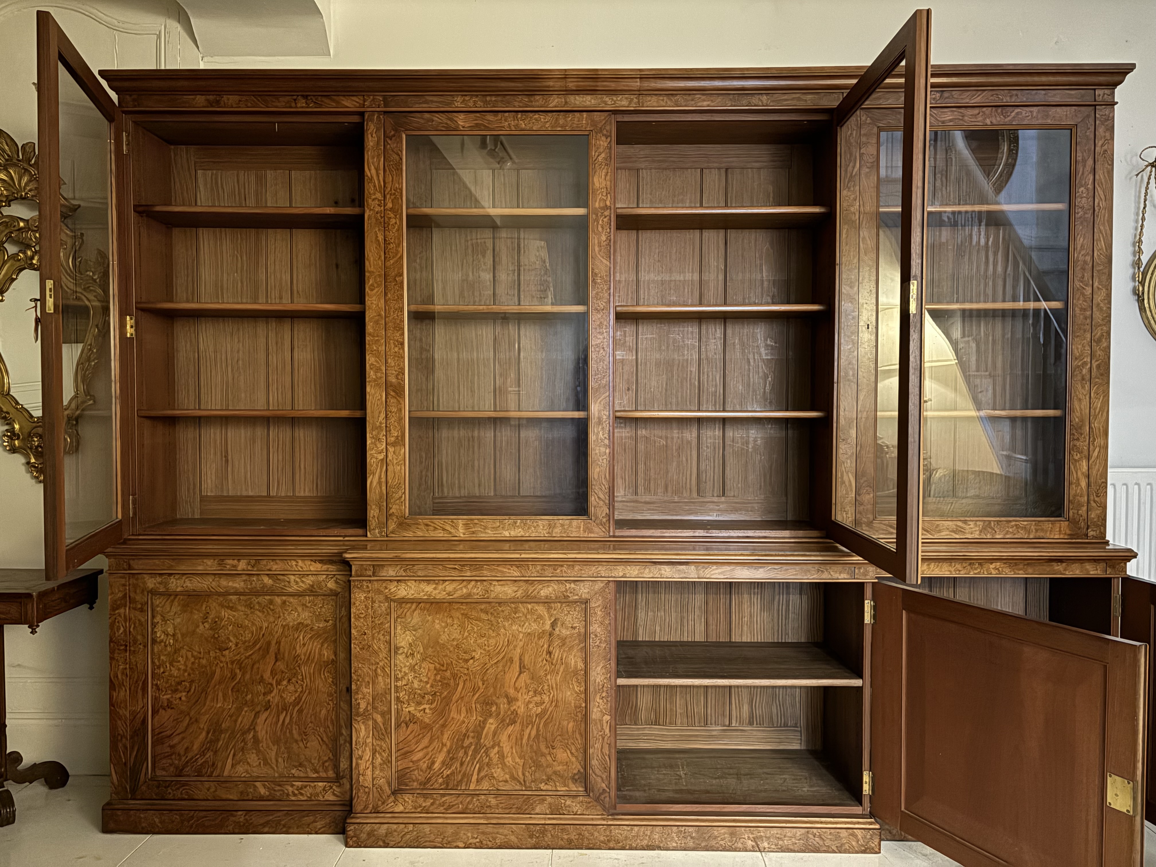 C19th burr walnut breakfront bookcase