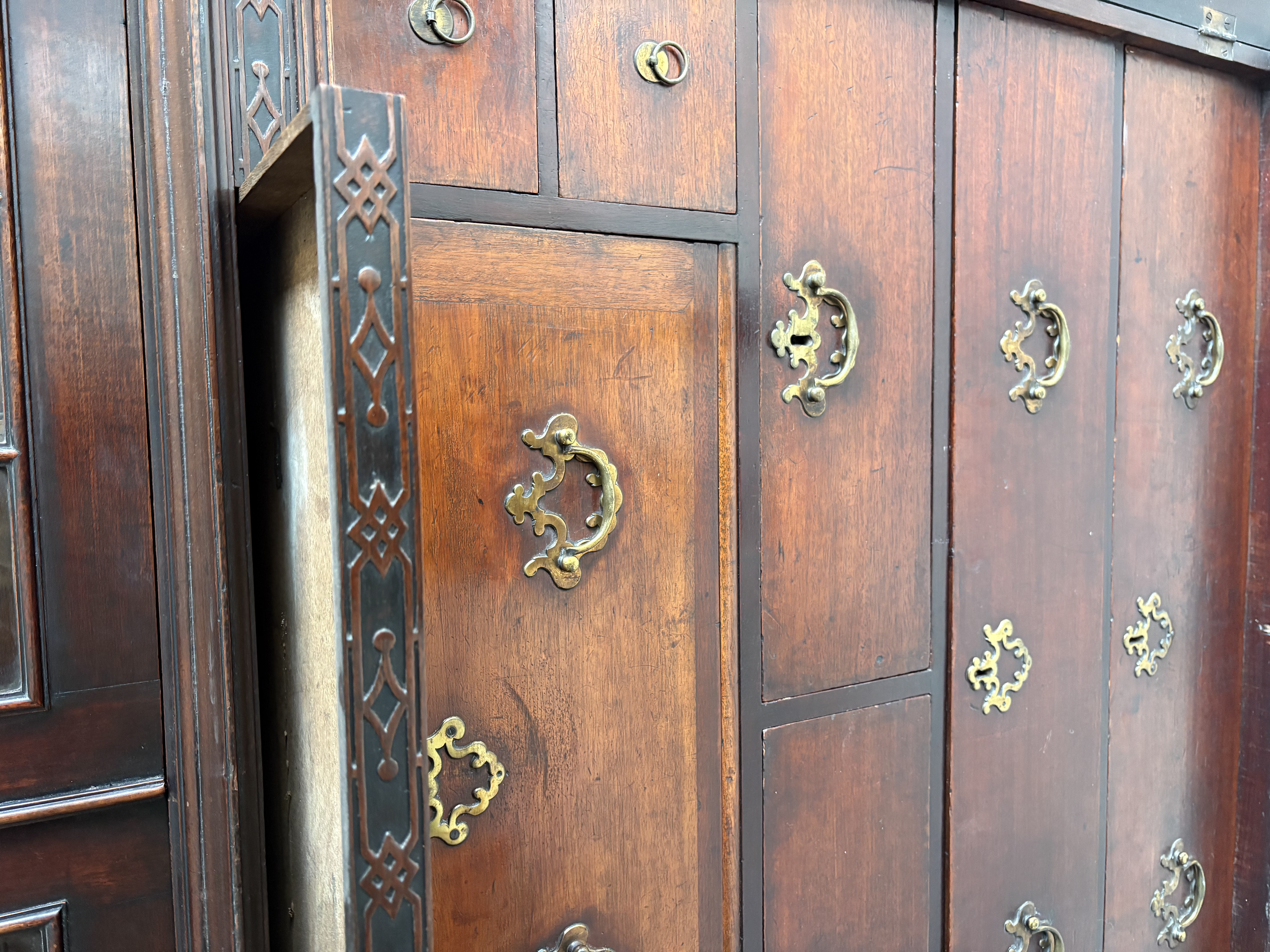 with 2 lower doors with fielded panels ,re entrant corners and original bracket feet.